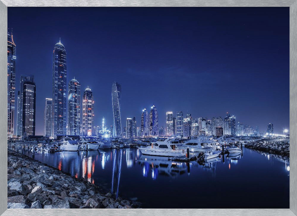 "Blue Night" är ett art print skapat av konstnär/artisten Mohamed Raof. Postern finns i flera storlekar och trycks på ett vitt, matt 200 gsm FSC-certifierat premiumpapper. Välj önskad storlek på din poster och lägg i varukorgen. Du kan även välja om du vill ha trycket med eller utan vit marginal (kant).