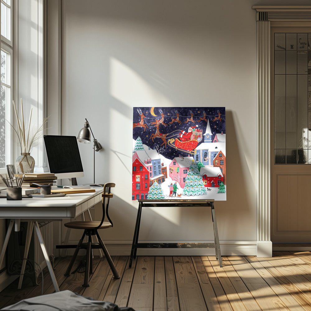 Santa and his Reindeers - Poster / Art Print